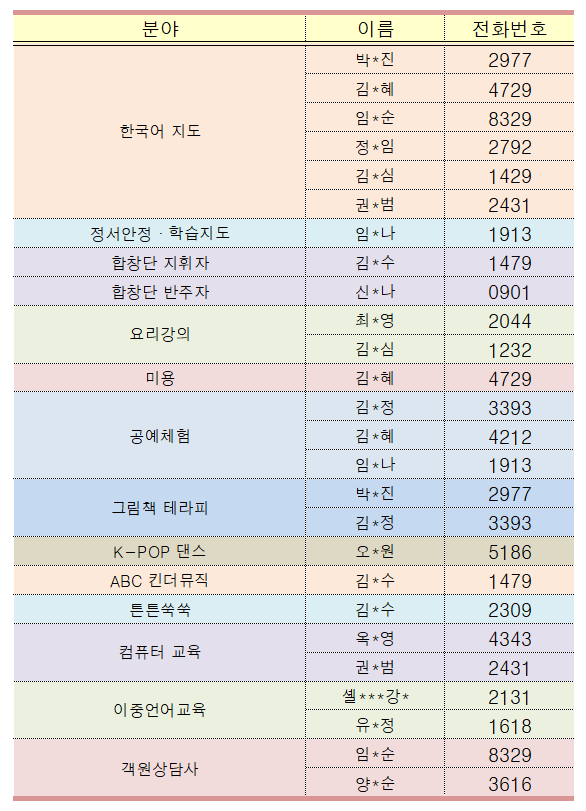 서류 및 면접 심사를 통해 아래와 같이 강사 활동 적격자로 선정하였음을 공지합니다.